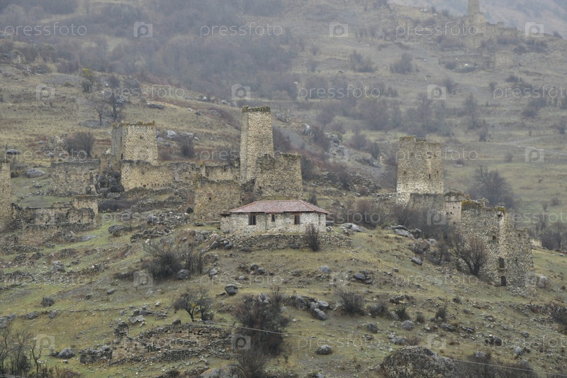 Природа Кавказа. башенный комплекс в горной Ингушетии, Россия