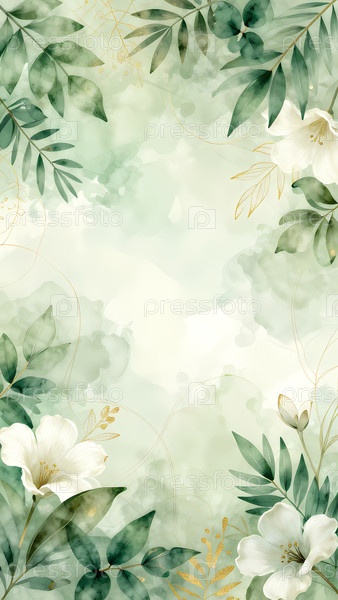 Белые цвета размещены на зеленом фоне в макете.Устройство простое и может использоваться для приглашений, открыток или других дизайнерских проектов Generative AI