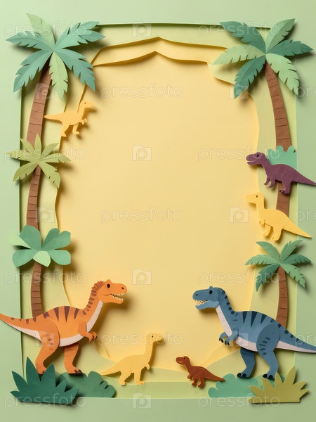 Динозавры расположены в вырезанной сцене с деревьями и растениями.Эта обстановка красочная и подходит для детских проектов или образовательных мероприятий Генеративный ИИ