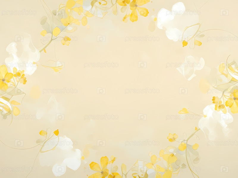 Цветы в белом, бежевом и желтом цветах на светло-сером фоне.Цветы образуют круглую форму, добавляя декоративный оттенок пространству Generative AI