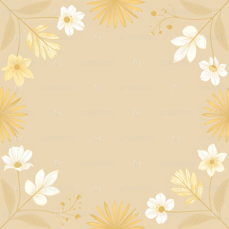 Маленькие белые цветы расположены вокруг краев бежевого фона.В дизайне представлены различные типы цветов и растений.Эта компоновка подходит для многих видов использования Generative AI