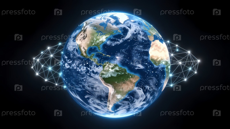 Глобус имеет сети, которые соединяют его, показывая при этом особенности земли и воды Генеративный ИИ