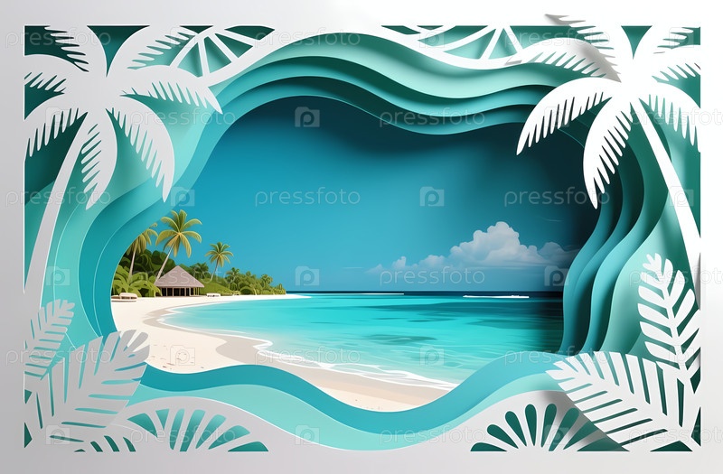 Пляж с чистыми океанскими волнами, пальмами, раскачивающимися в ветре и тропической обстановкой идеально подходит для отдыха и веселья.Живые цвета привлекают внимание Генеративный ИИ