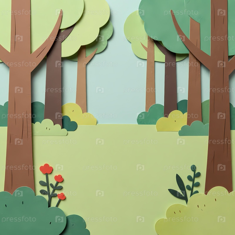 Творческая лесная сцена показывает бумажные деревья и растения, расположенные на светло-зеленом фоне.Этот дизайн прост и подходит для различных художественных проектов или тем Генеративный ИИ