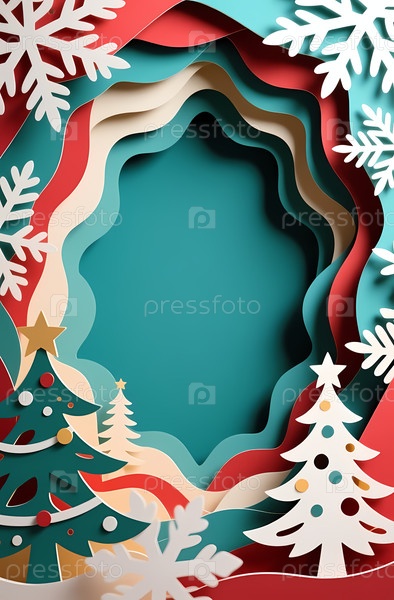 Праздничная фоновая бумага показывает слои цветов с рождественскими деревьями и снежинками. она идеально подходит для новогодних, рождественских открыток и праздничных приветствий генеративный AI