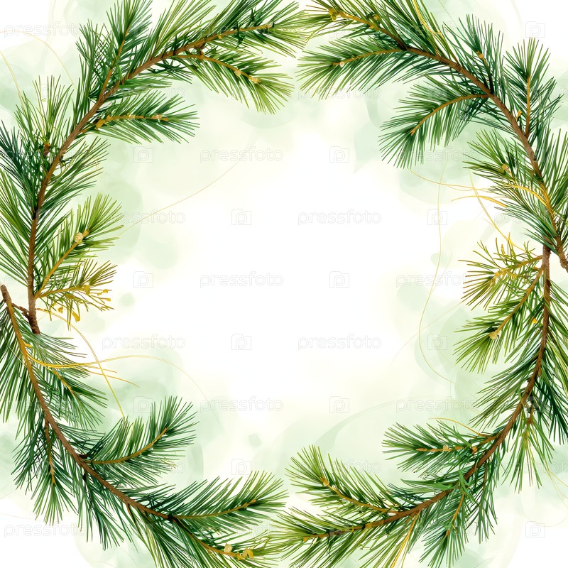 Дизайн, в котором изображены ветви пихты, расположенные по круговой схеме. Центральная область оставлена свободной для текста или сообщений. Подходит для открыток или сезонных поздравлений Generative AI