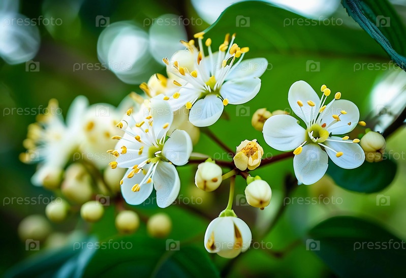 В саду изображены цветы соломинки с белыми цветами и желтыми акцентами днем.Пчелы и бабочки привлекаются ароматными цветами Generative AI