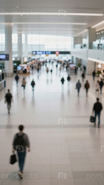 Люди перемещаются через терминал аэропорта, когда они несут чемоданы и проверяют окрестности