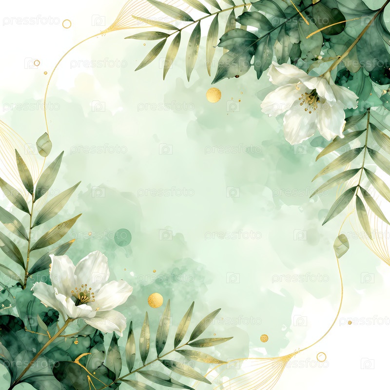 Устройство изображает белые цветы, окруженные зелеными листьями на светло-размытом фоне.Дизайн прост и фокусируется на естественных элементах и цветах Generative AI