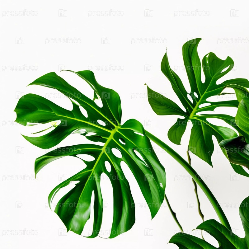 Цветные цветы выставляются рядом с большими листьями монстров.Настройка фокусируется на естественных формах и текстурах листьев и цветов.Солнечный свет подчеркивает их цвета генеративный AI