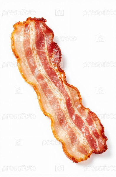 Кусок нарезанного беконной слизи показывает текстуру и жир свинины.Он сидит на простом белом фоне, готов к приготовлению пищи или кулинарии Generative AI