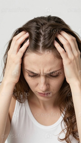 Женщина выглядит обеспокоенной, когда она держит голову в то время как сталкивается с проблемой волос