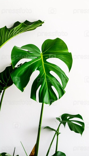 Яркие цветы и большие листья помещают монстров в солнечное место.Цветы выделяются на фоне зеленых листьев, добавляя цвет к обстановке Generative AI