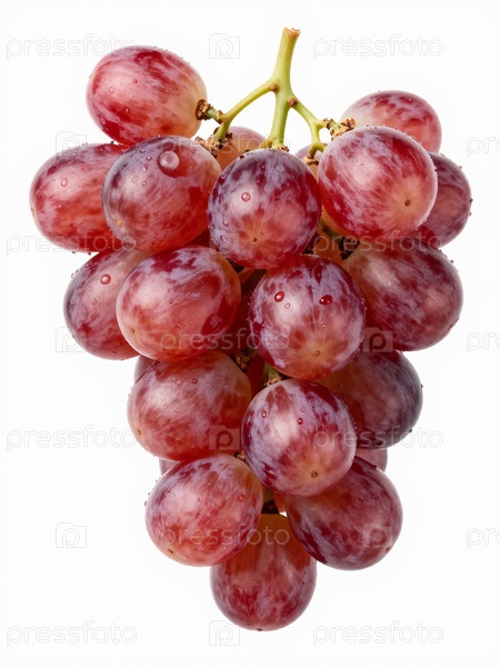 На зеленом стебле виден букет красных виноград. Каждый из них имеет капли воды на своей поверхности. Яркий свет улучшает детали винограда Generative AI