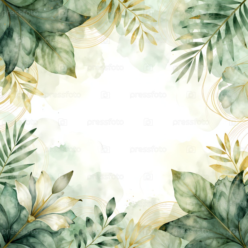 Белые цветы и зеленые листья заполняют границу макета. Мягкий фон создает нежный дисплей. Этот дизайн подходит для различных проектов и ремесел Generative AI