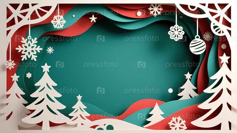 Этот фон новогодней и рождественской открытки показывает бумажные резные конструкции Generative AI