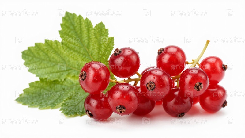 Красные смородины сидят на простом белом фоне. Они расположены с зелеными листьями. Плод показывает свежие и блестящие поверхности. Свет подчеркивает естественные цвета и детали Generative AI