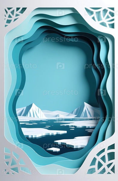 Айсберги и ледники дрейфуют в Северном Ледовитом океане.Ледяные горы появляются на заднем плане под чистым синим небом.Сцена показывает холодную красоту Полярного региона Generative AI