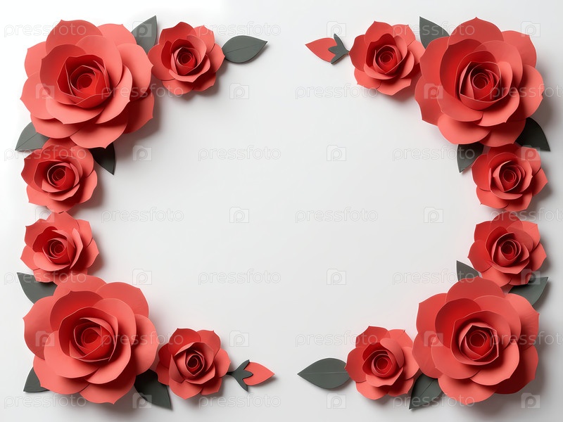 Розы, сделанные из бумаги в красных оттенках создают границу вокруг пустой области.Этот дизайн размещается на простом розовом фоне, подходящем для написания заметок или сообщений Generative AI
