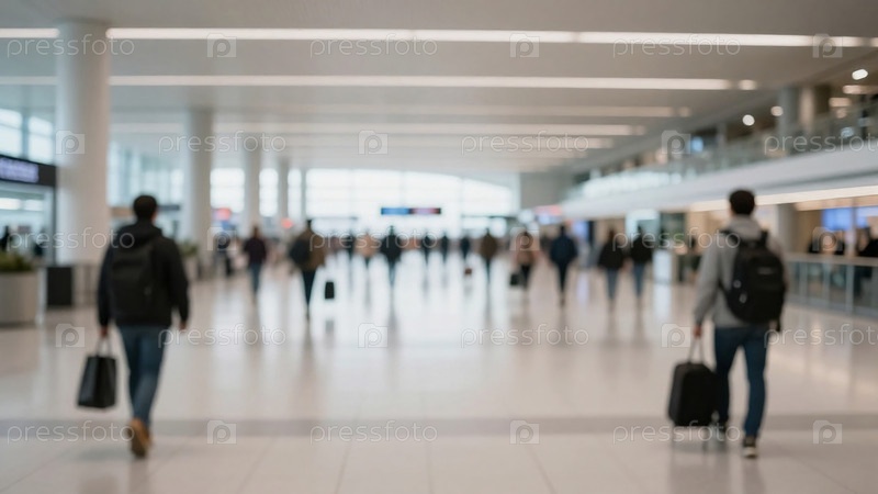 Толпы людей перемещаются по оживленному терминалу аэропорта. Каждый человек несет чемоданы и багаж. Эта сцена показывает активность путешествий и туризма в течение дня Генеративный ИИ
