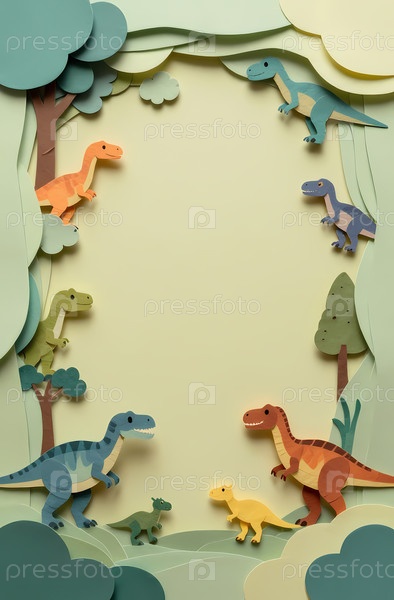 Различные формы динозавров и деревья создают игривую сцену, идеально подходящую для детей Генеративный ИИ