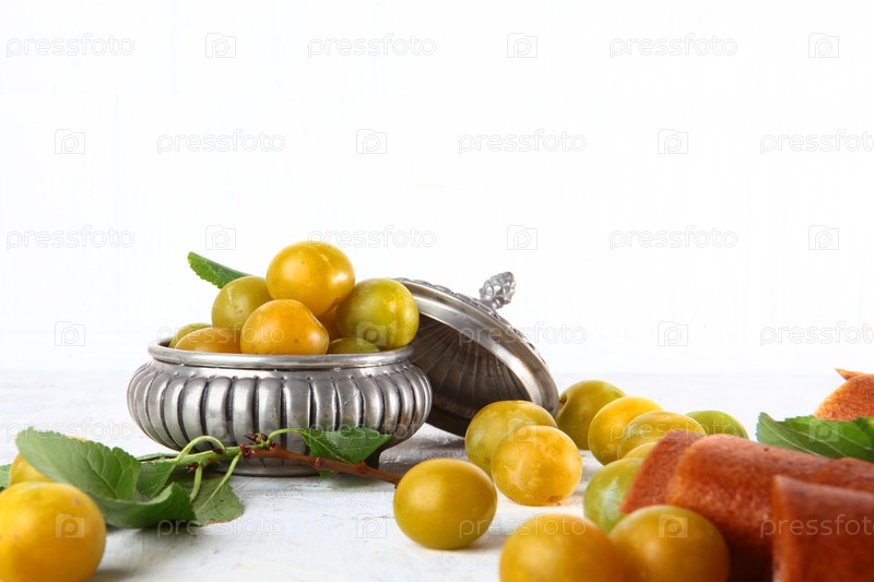 Таблетки, сделанные из натуральных фруктов без сахара. Плотовая паста. Здоровая сладостность без калорий. Зрелая слива светлого цвета. Концепция здорового образа жизни. Копировать пространство