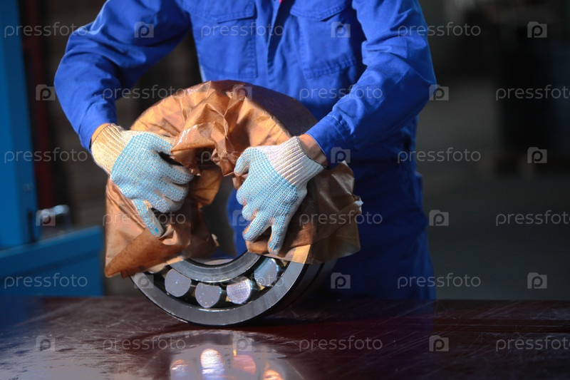 Упаковка подшипника для защиты от коррозии, загрязнения и механического повреждения. Производство подшипников. Хранение и транспортировка подшипников. Готовые продукты на фабрике. Мастерская на заводе тяжелой промышленности. Тяжелая промышленность