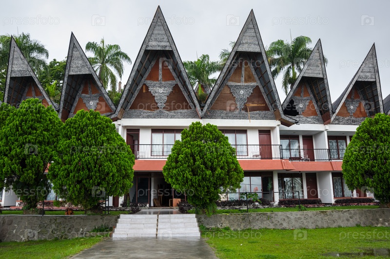 Вид на дома деревни Туктук на острове Самосир