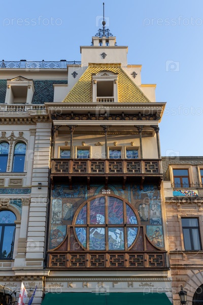 Вид на украшенное здание бывшего Национального банка Грузии на площади Европы в Батуми