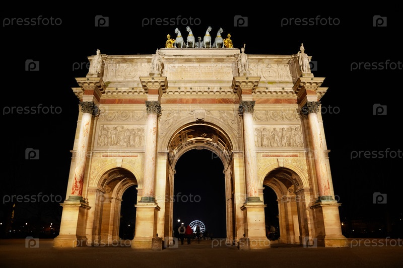 Триумфальная арка на площади Карусель в Париже ночью
