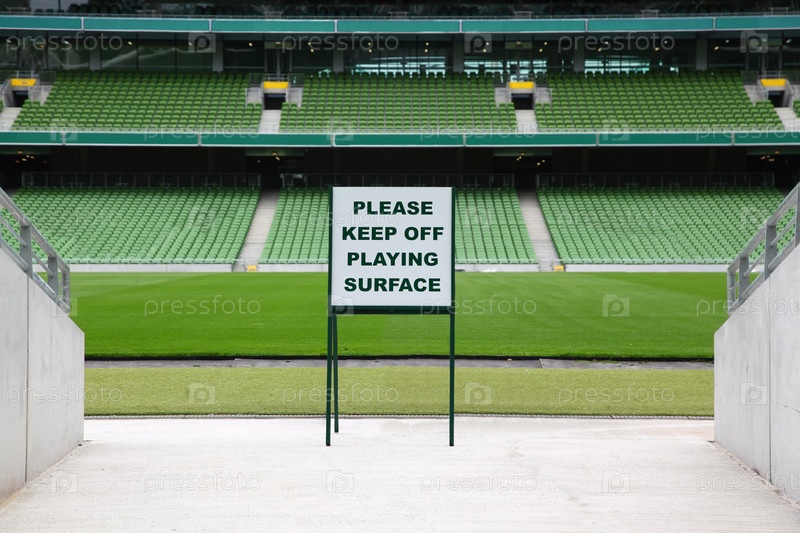 Ряд сложенных, зеленых пластиковых сидений на очень большом пустом стадионе
