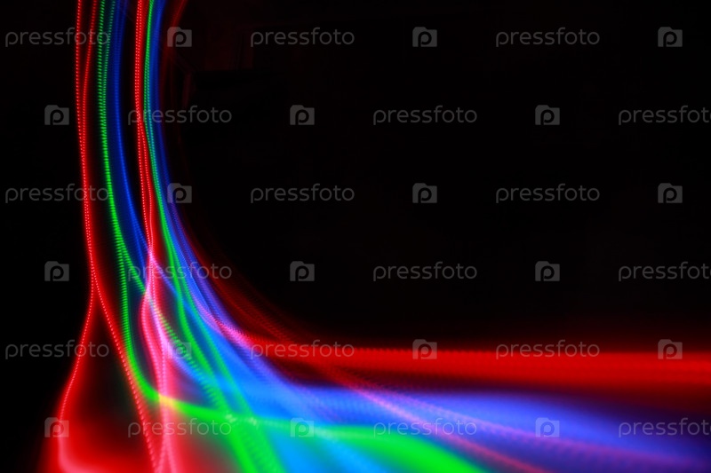 Абстрактные красочные линии на черном фоне, синий, зеленый, розовый и красный