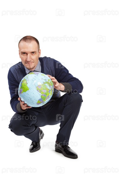 Человек на коленях, держащий земной шар