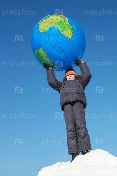 Маленький мальчик, держащий большой надувный шар над головой на открытом воздухе в