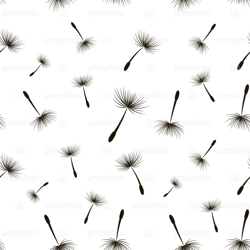 Черно-белые семена одуванчика бесшовный векторный рисунок, роскошная органическая текстура