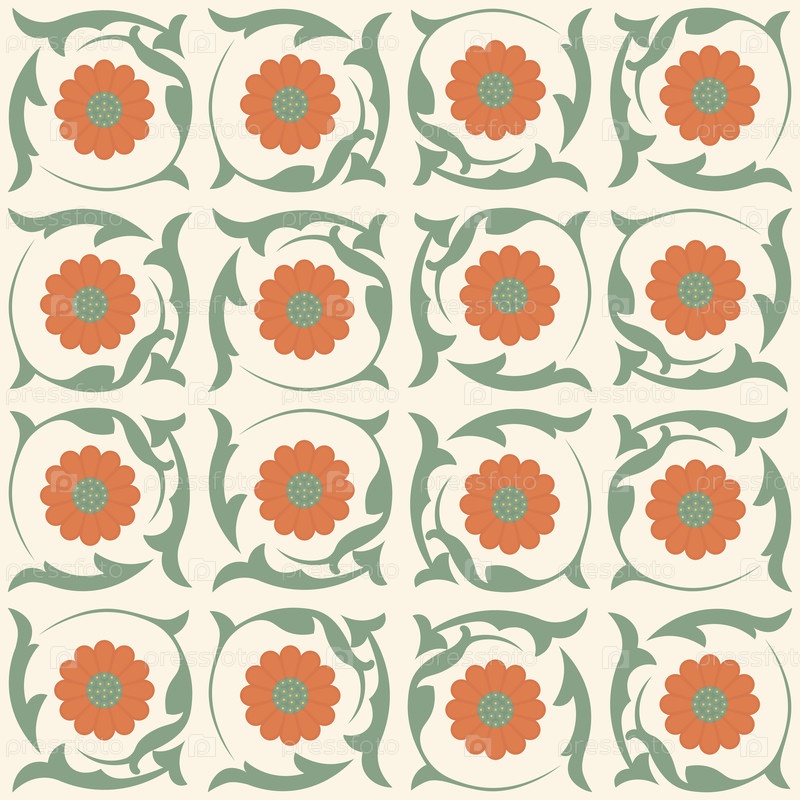 Бесшовный цветочный векторный квадратный рисунок в стиле Возрождения