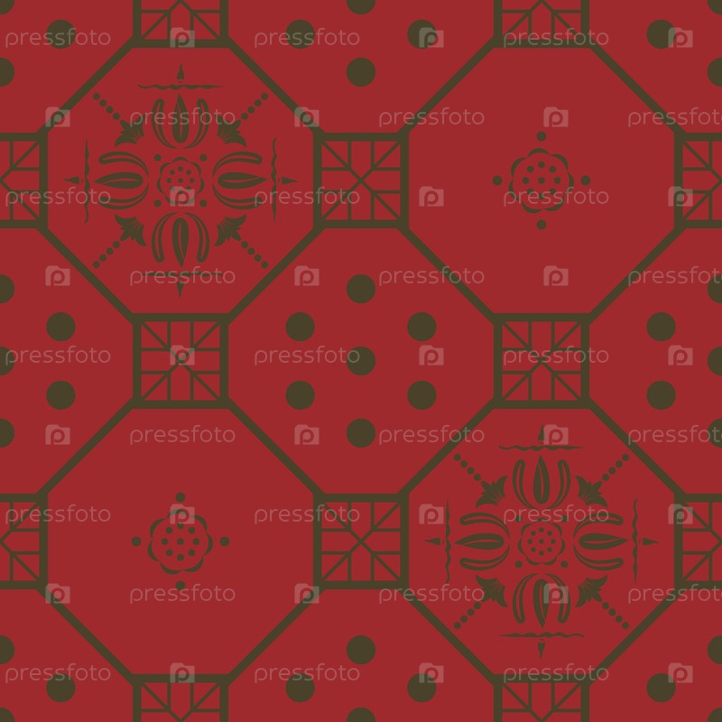 Бесшовный рисунок в стиле Chinoiserie из красного и винтажного золота