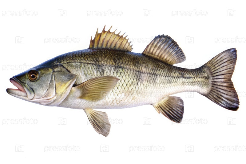 Подробная иллюстрация рыбы баррамунди, демонстрирующей свои отличительные черты на чистом белом фоне, идеально подходит для образовательного и кулинарного использования
