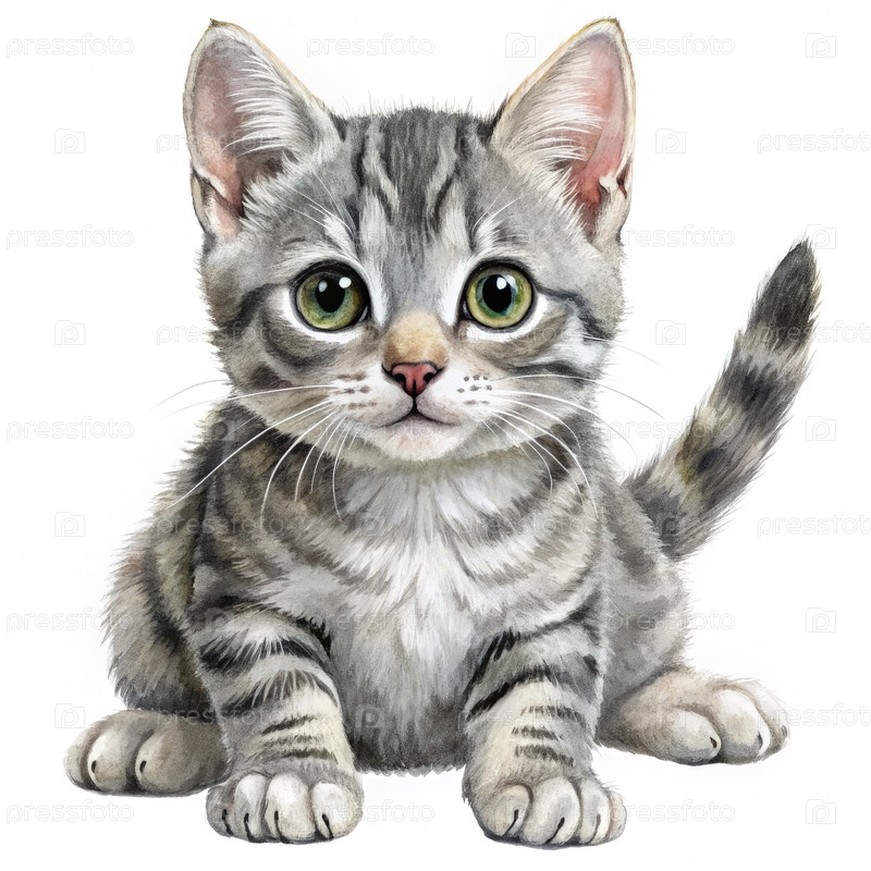 Clipart of Очаровательный игривый котёнок с яркими глазами и полосатой шерстью. генеративный очаровательный ИИ