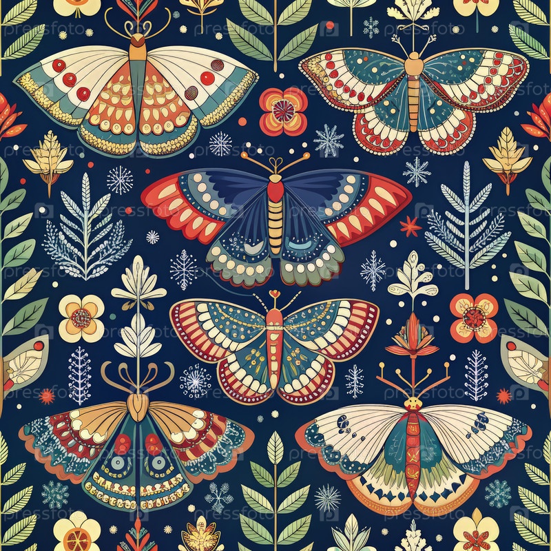 Элегантный скандинавский народный мотив, в котором изображены красочные мольбы, окруженные цветочными элементами и природой