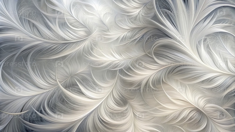 Очаровательное абстрактное произведение искусства с вихревыми узорами в белом и сером цветах, создавая завораживающий эффект с текущими текстурами
