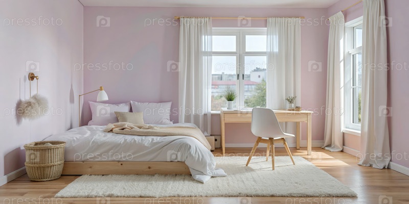 Минималистическая спальня с пастельными стенами и естественным светом в спокойной обстановке