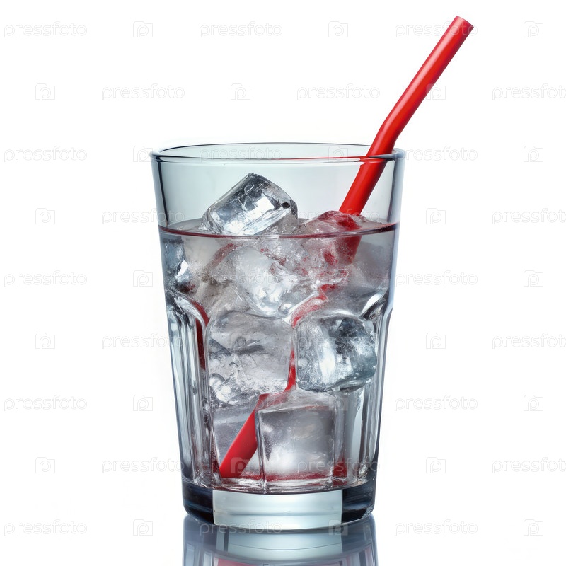 Освежающий стакан ледяной воды с красной соломинкой сидит на поверхности, захватывая сущность гидратации в теплый день