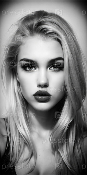 Молодая женщина с прямыми светлыми волосами, позирующая на нейтральном фоне