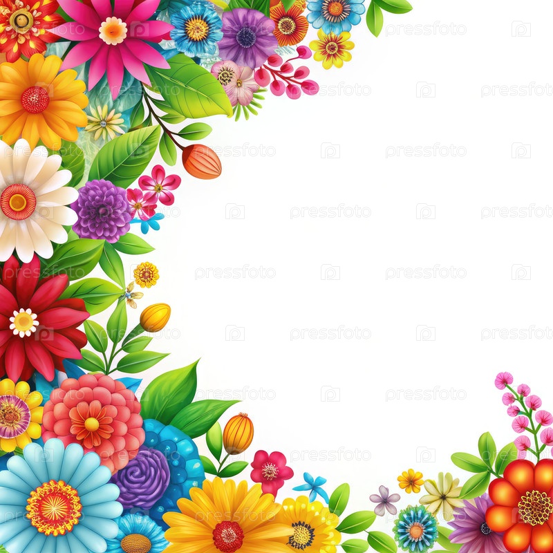Вибрирующий цветочный угол границы с разноцветными цветами для творческих проектов в дневное время