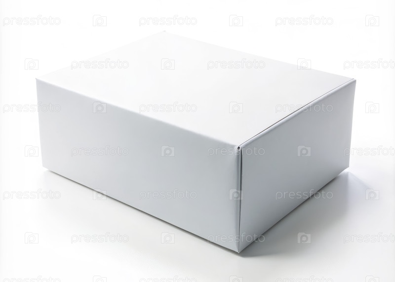 Большая прямоугольная коробка с белой бумагой, расположенная на чистой поверхности в условиях нейтрального освещения