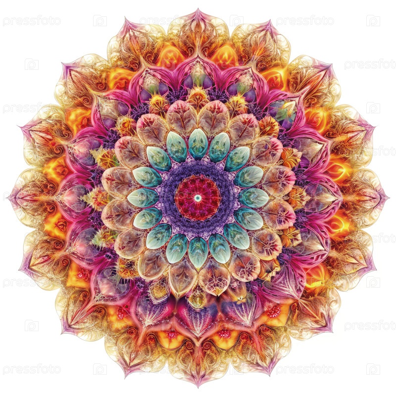 Красочный фрактальный дизайн мандалы с цветочными узорами и сложными деталями