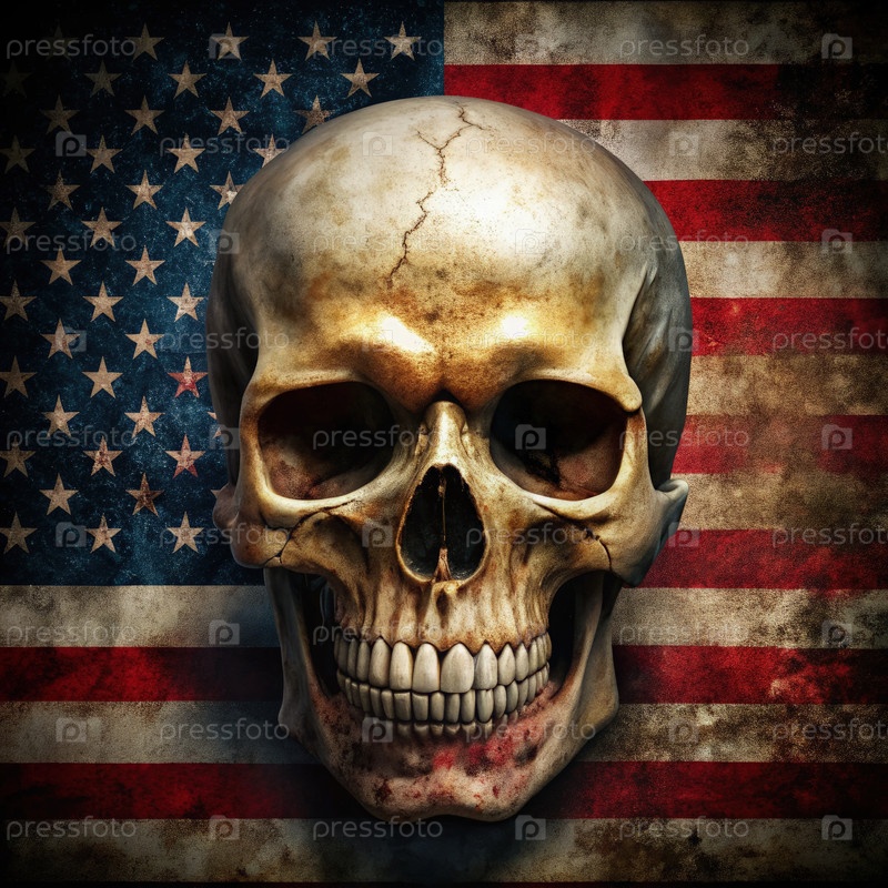 Дизайн черепа на фоне американского флага подчеркивает темы смерти и патриотизма