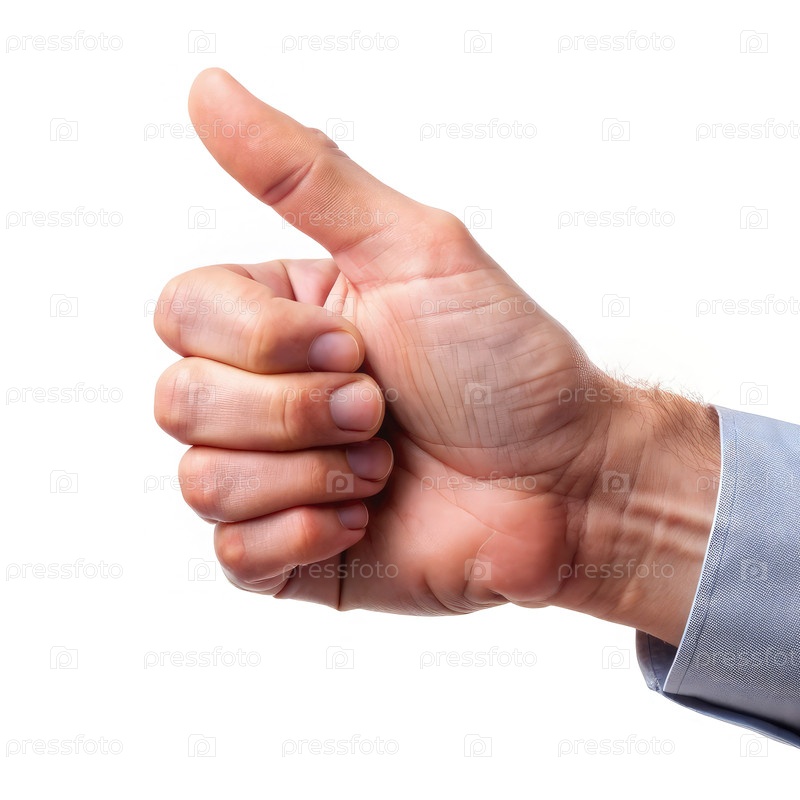 Рука, делающая жест поднятия большого пальца на простом фоне
