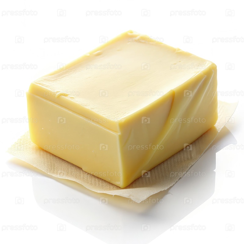 Масло на белом фоне, готовое к использованию в приготовлении пищи или выпечке
